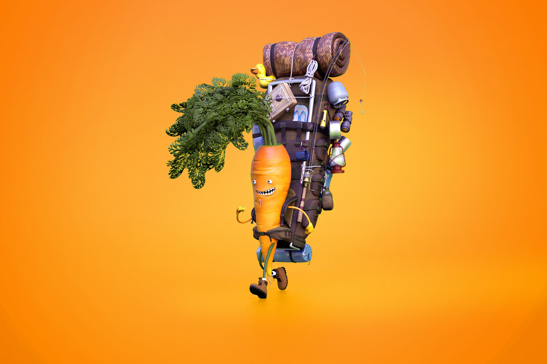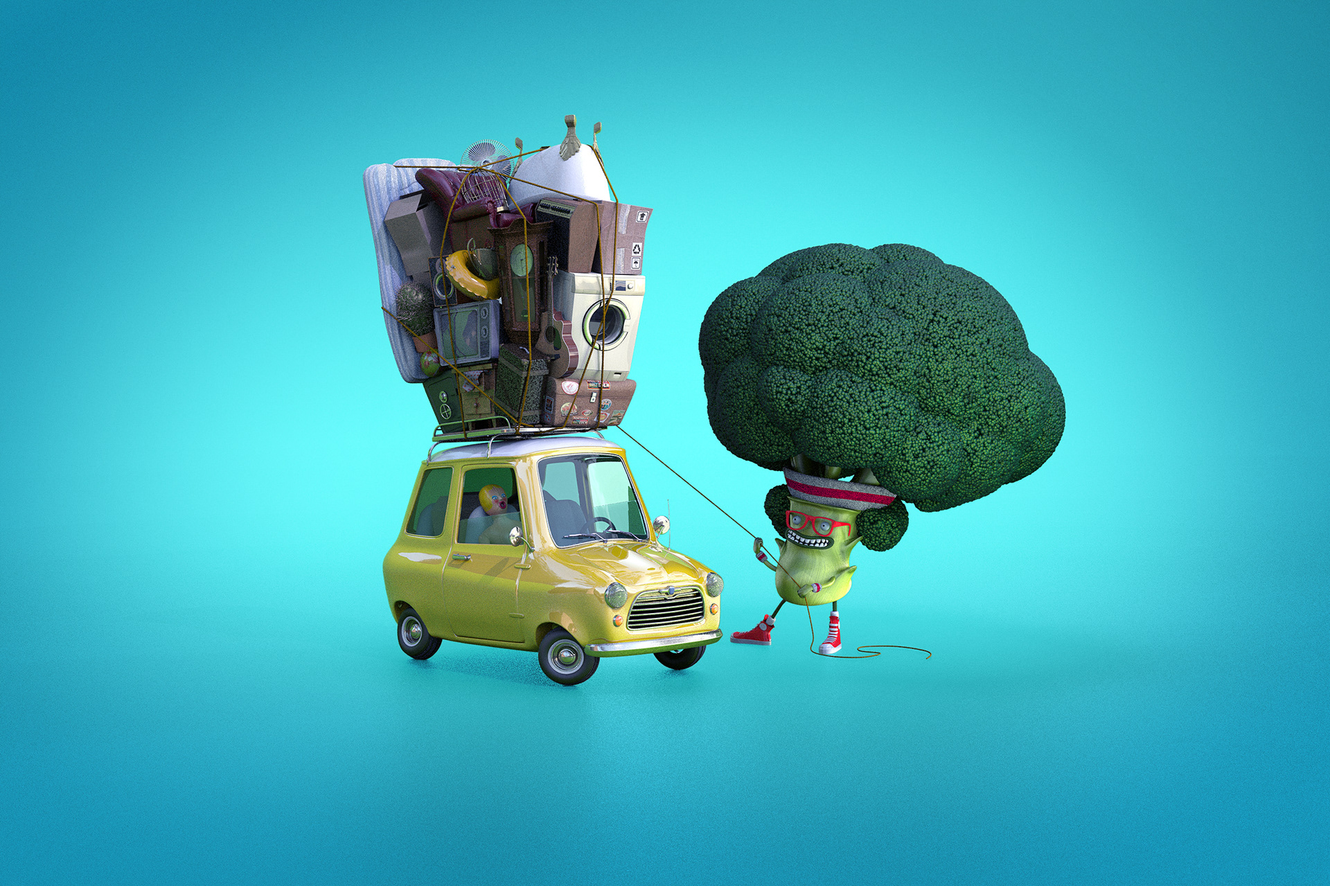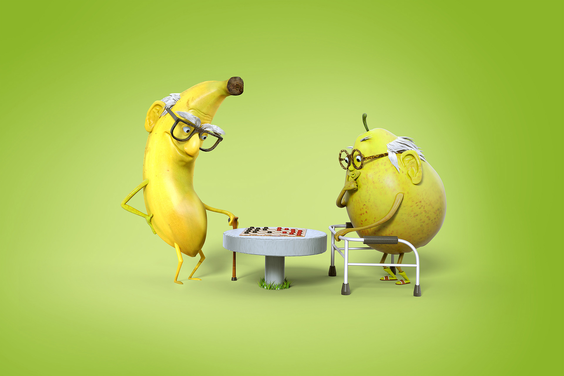 3D characters of fruits and vegetables for a refrigerator company advertising.